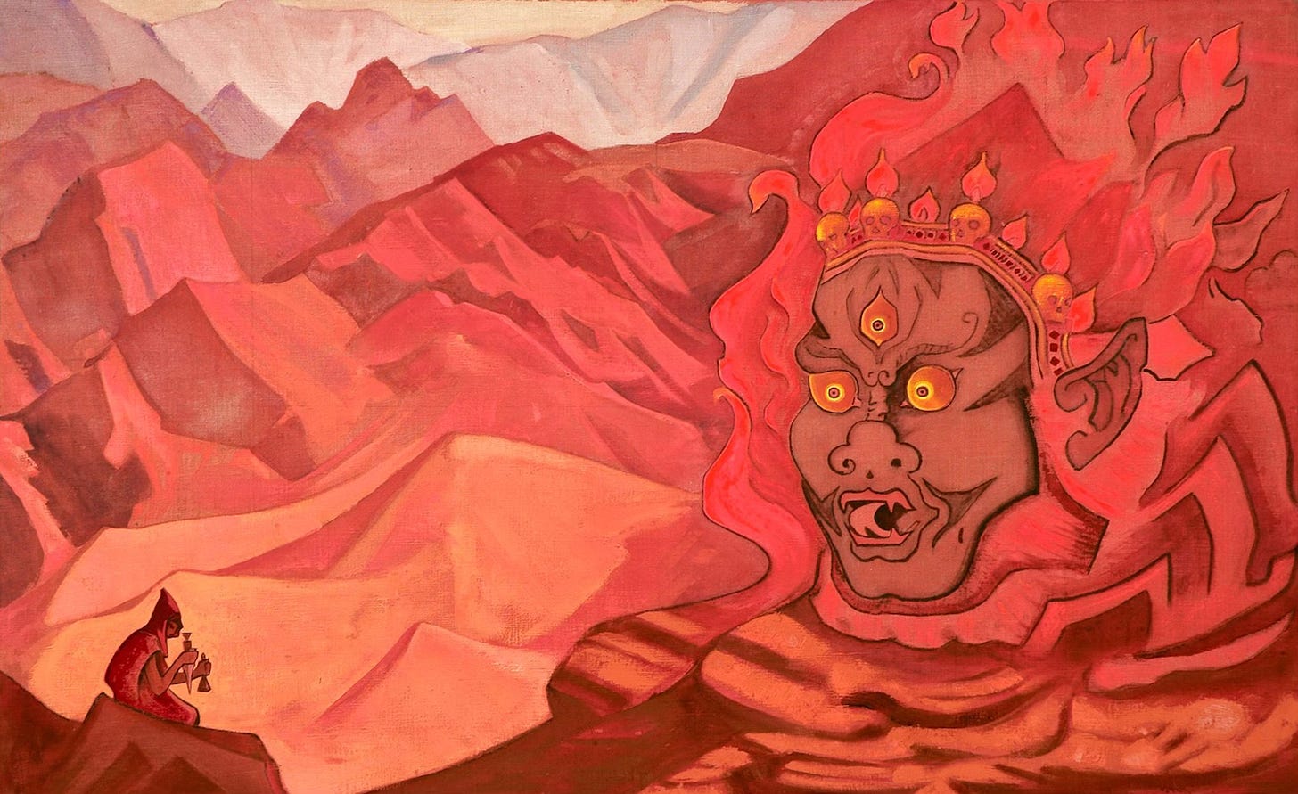 When I see the painting above from Nicholas Roerich (Dorje the Daring One, 1925), it speaks to me about how facing our demons requires immense stillness and an absence of personal attachment.